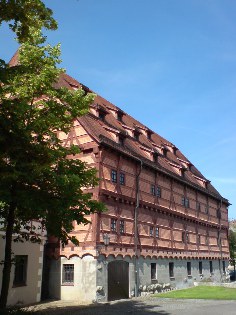 Dreh- und Angelpunkt eines Stadtrundgangs dürfte der Marktplatz sein, wo neben dem Landhaus, dem Rathaus und dem beachtlichen Brunnen auch das etwas zurückgelegene „Schlösschen“ einen Blick verdient, u.a. weil es daran erinnert, dass der Landadel auch gern über ein repräsentatives Gebäude in der Stadt verfügte. Lohnenswert ist der Weg hinunter zur Schmiech (z.B. auf der Kasernengasse, über die Sie in die Stadt geradelt sind), denn auf der nördlichen Seite können Reste der Stadtbefestigung, genauer des Wehrgangs und des sogenannten Pfisterturms besichtigt werden. Dabei kommen Sie auch am Museum der Stadt vorbei, das verschiedene Sammlungen zur Stadtgeschichte präsentiert (geöffnet mi 10-12 & 14-17 h, so 14-17 h) und auch ohne Besuch der Ausstellungen durch sein herrliches Fachwerk zu imponieren weiß.