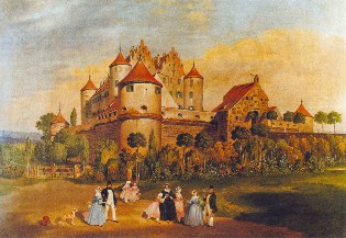 Erbach, 529 m ü.NHN, 13.100 Einw., ist zwar erst seit dem 1. August 2002 eine Stadt, kann aber dennoch darauf verweisen, ein geschichtsträchtiger Ort zu sein; denn immerhin thront über der Stadt ein Renaissanceschloss, das seit 1620 den Reichsfreiherren von Ulm zu Erbach gehört (Abb. Franz Xaver Müller). Das von einer Wehrmauer umgebene Schloss erreicht man – nach kurzem Anstieg – stilecht über eine Zugbrücke und kann – auf Anfrage – das Schlossmuseum besichtigen. Schön ist es aber auch, in den Sommermonaten im Schlosshof einer der Aufführungen (Konzerte, Theater) beizuwohnen. Und wenn Sie über Nacht bleiben, lohnt ein Blick in die Pfarrkiche St. Martin, die sich gleich neben dem Schloss befindet.