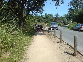 Dort biegen Sie links ab und dürfen nun auf einem Radweg Magdeburger Bauweise fahren (einst erfanden Mitglieder eines Magdeburger Radvereins diese Wegeart und finanzierten sogar den Bau aus der Vereinskasse!). D.h. neben der Straße verläuft ein Schotterweg, der durch Holzpoller vor der Benutzung durch Kfz geschützt wird.