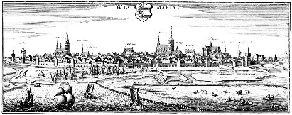 Wismar, 13 m ü.N.N., 42.000 Einw., wurde zusammen mit Stralsund im Juni 2002 in die Liste der UNESCO- Welterbestätten aufgenommen, was in Anbetracht des mittelalterlichen Stadtgrundrisses und zahlreicher Profangebäude längst vergangener Zeiten nebst den herausragenden Kirchen, dem Alten Hafen und der 'Grube' (s.u.) leicht nachvollziehbar ist, wobei zu bedenken ist, dass Wismar im Zweiten Weltkrieg wegen der Industriebetriebe mehrfach Ziel von Bombardierungen war und später in der DDR die Mittel (und der politische Wille) fehlten, die Altstadt zu sanieren. Wer Wismar zu DDR-Zeiten bzw. kurz nach dem Mauerfall besucht hat und nun nach langer Pause erneut in die Stadt kommt, darf jedenfalls staunen, wie viel in wenigen Jahren geschafft wurde (und noch wird) Stadtansicht: Matthäus Merian sen.